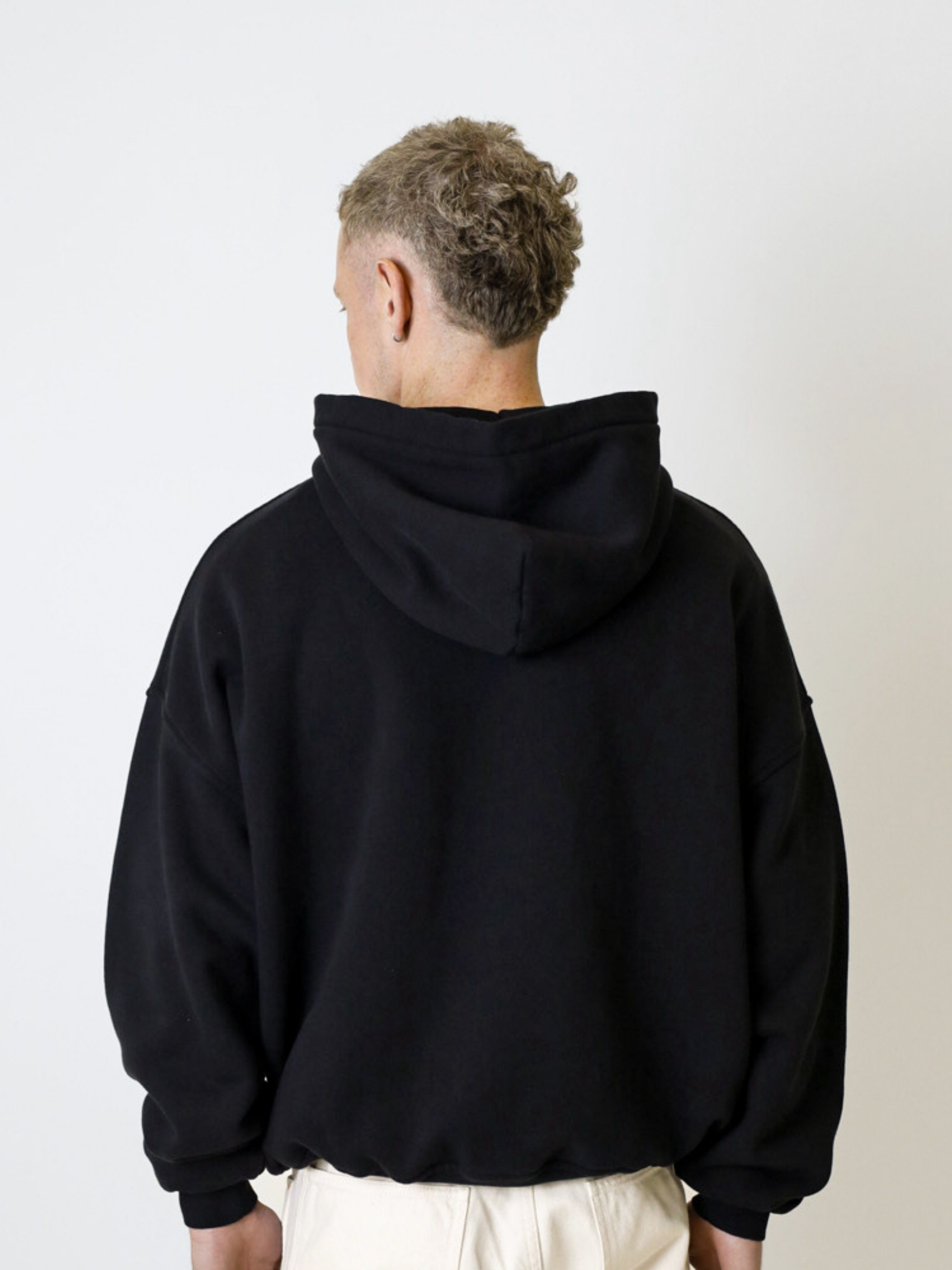 The Core Collection Hoodie in Black is a premium staple designed with a meticulous focus on fit, feel, and timeless wearability. Crafted from 100% heavyweight 490gsm cotton, it delivers a dense yet soft feel with a relaxed silhouette that offers structure without compromising comfort.