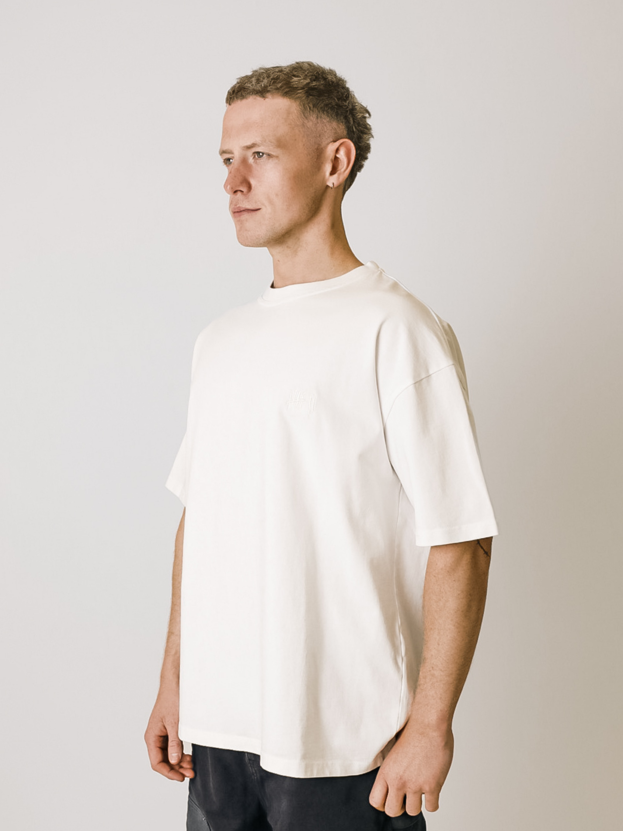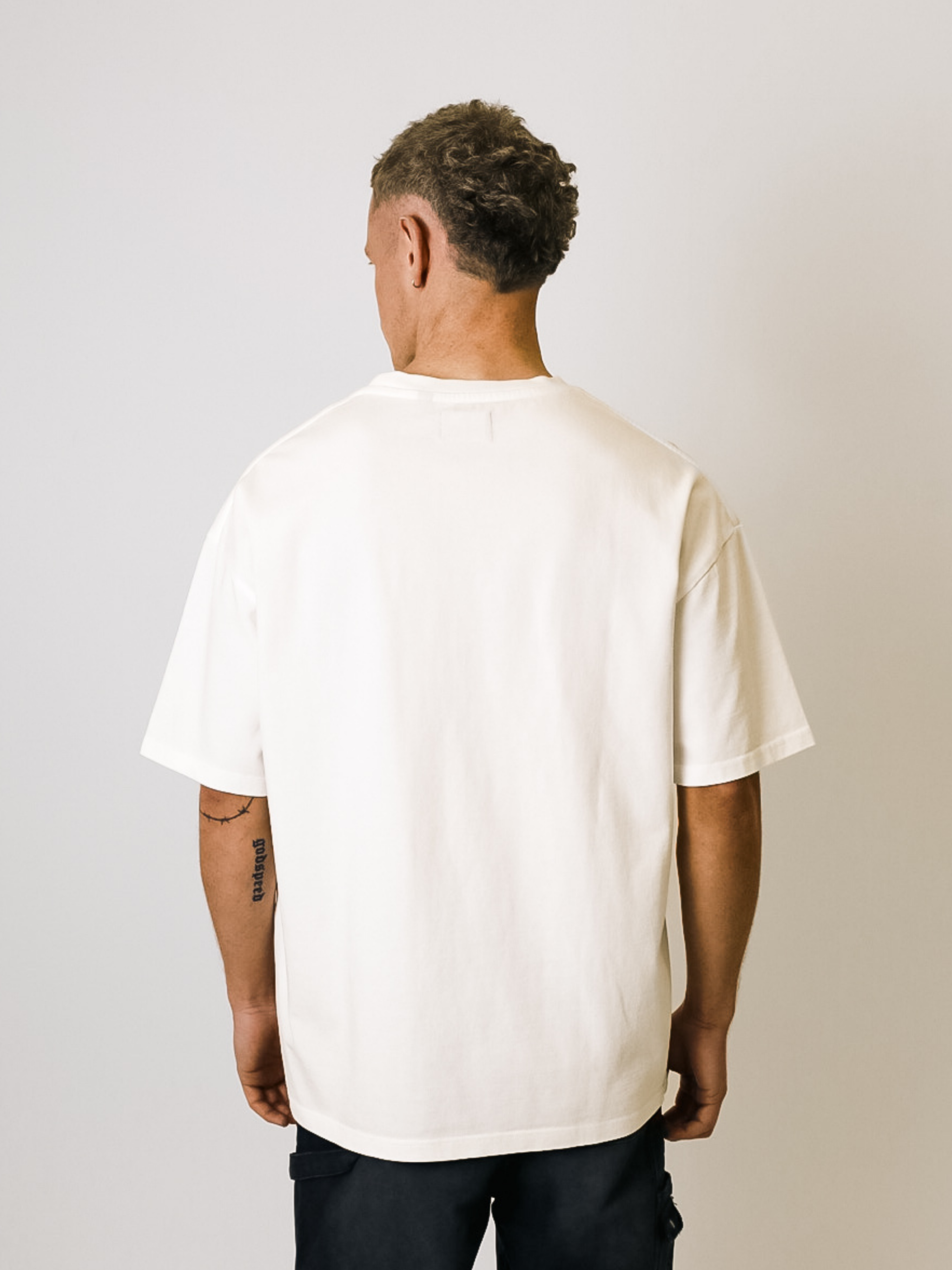 Finished in a clean, bright white tone, the fabric offers a crisp foundation that adapts to any setting. Tonal embroidery of our signature Tally mark sits subtly on the chest – a considered detail that reflects the understated identity of the Core Collection. Designed for daily rotation and long-term wear, this piece blends premium construction with everyday versatility.