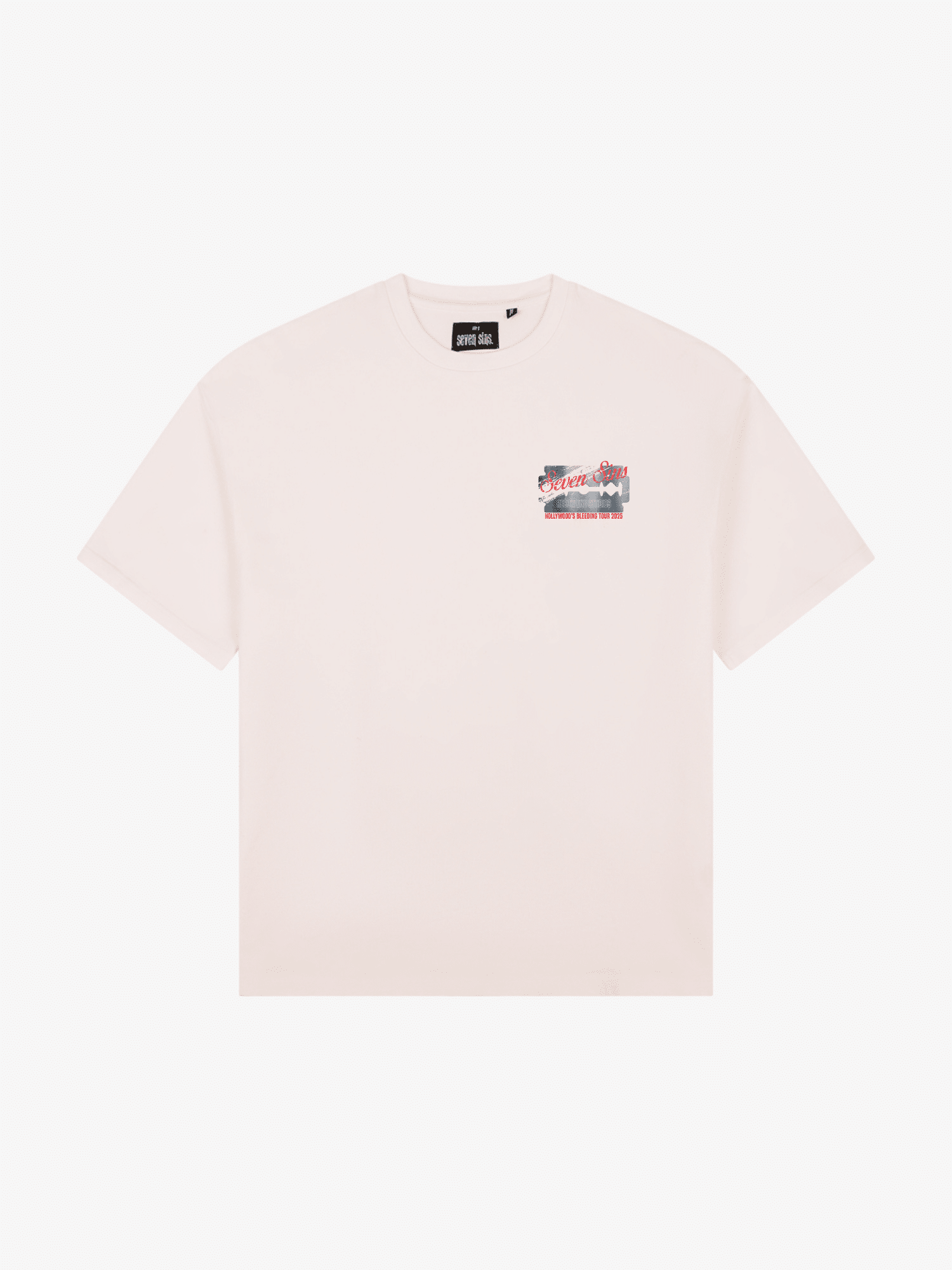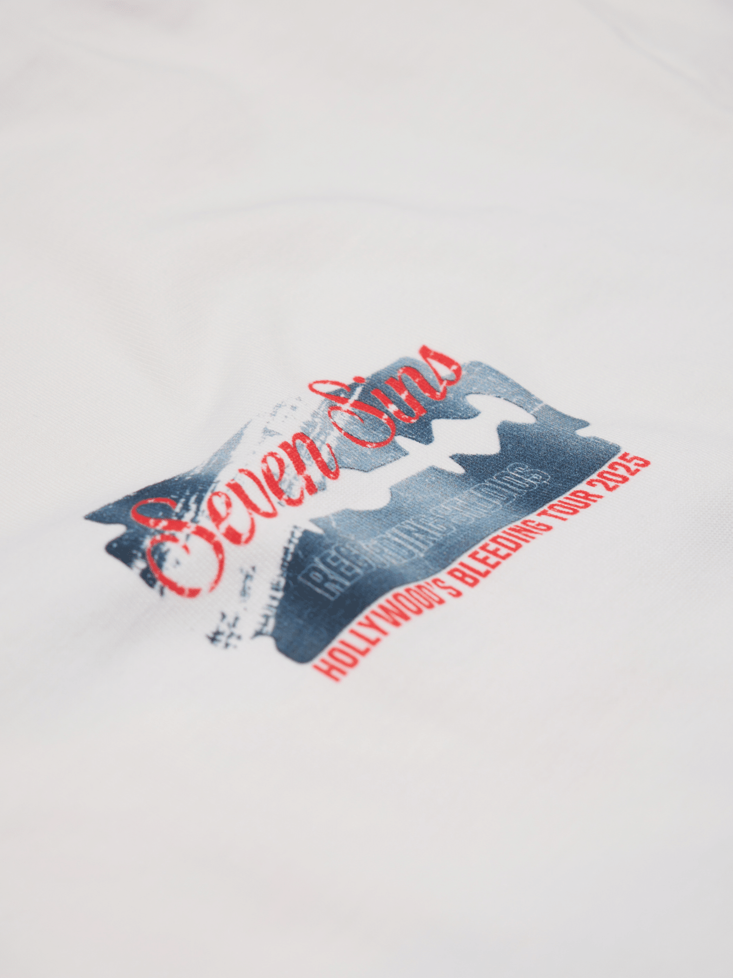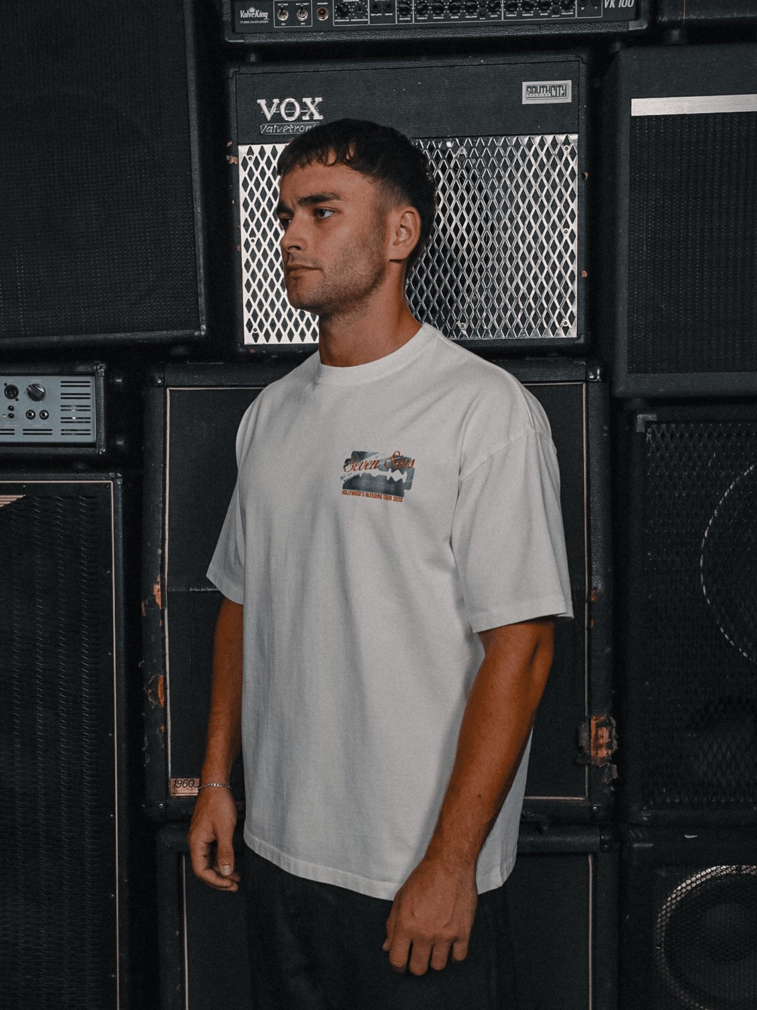 Introducing the Cut Throat T-Shirt in White. This T-Shirt is crafted from premium 300gsm heavyweight cotton, offering a substantial, premium feel. Its boxy silhouette provides a relaxed fit. Each piece is individually hand-finished, featuring the Cut Throat graphic printed on the chest and back.