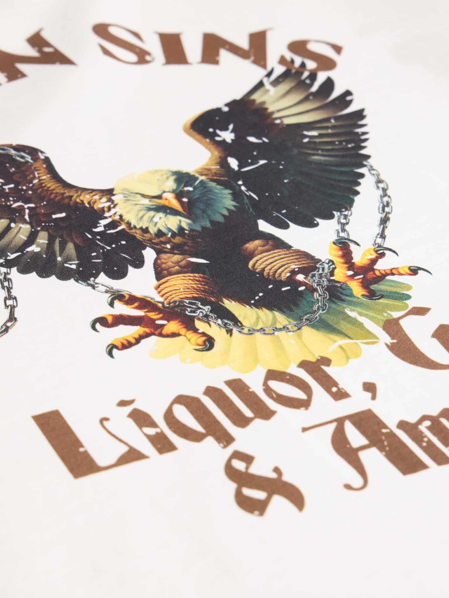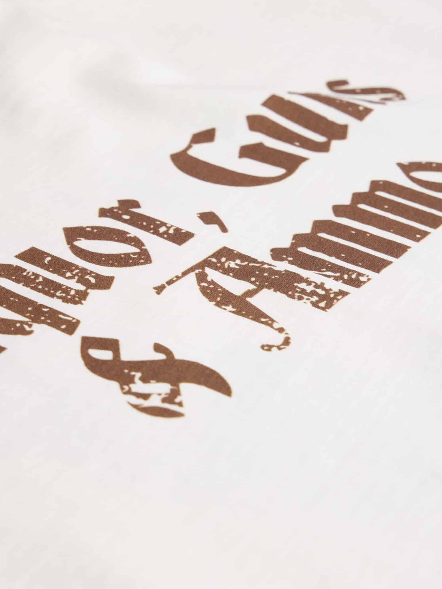 Introducing the Liquor, Guns & Ammo T-Shirt in White. This T-Shirt is crafted from premium 300gsm heavyweight cotton, offering a substantial, premium feel. Its boxy silhouette provides a relaxed fit. Each piece is individually hand-finished, featuring our bold Liquor, Guns & Ammo graphic printed on the front and text on the back.